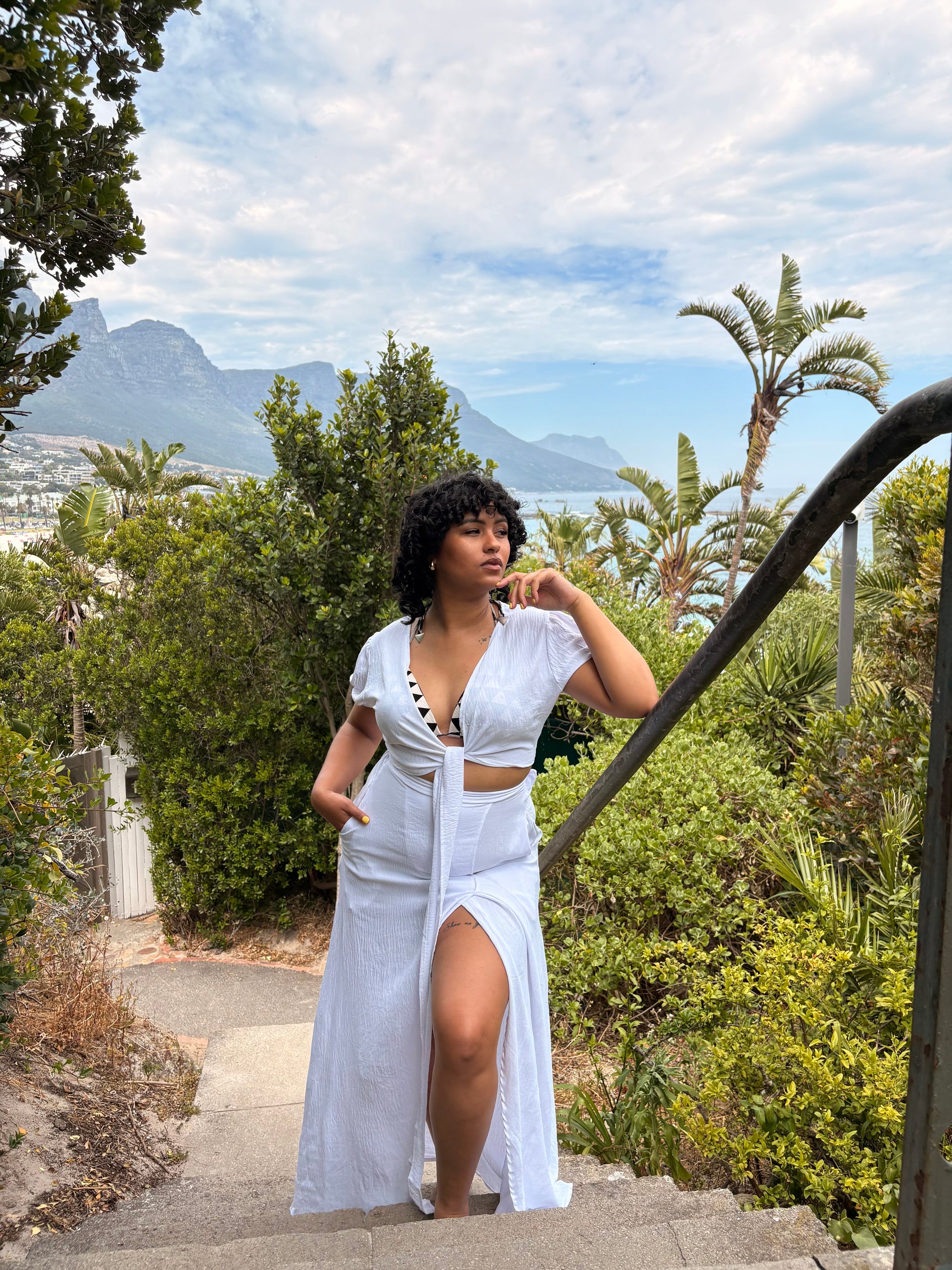 This look was made for days spent between the ocean and open sky. The Raven Whisper Set drapes effortlessly, featuring a front-tie crop top and a flowing skirt with a daring slit that moves with every step.